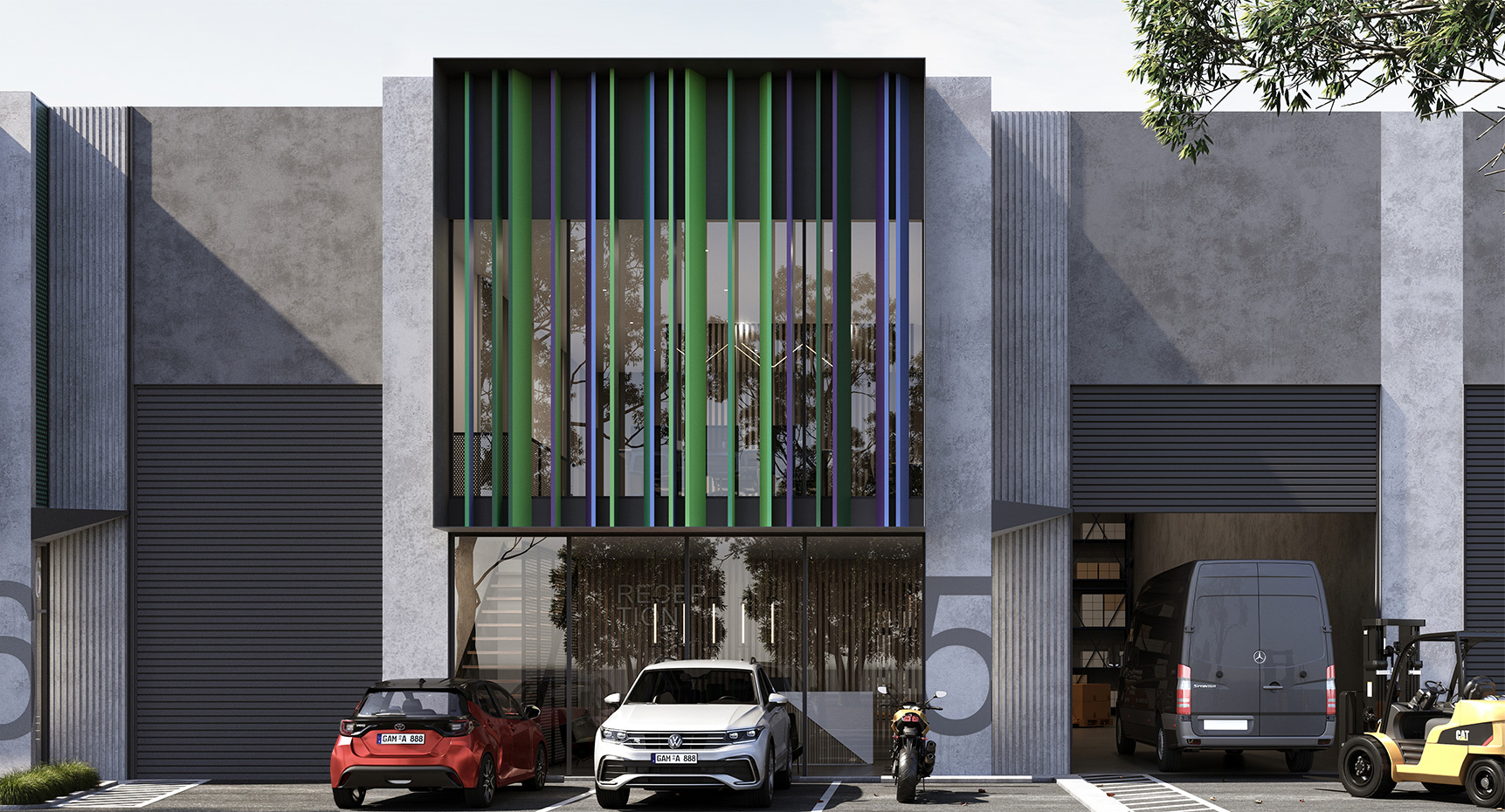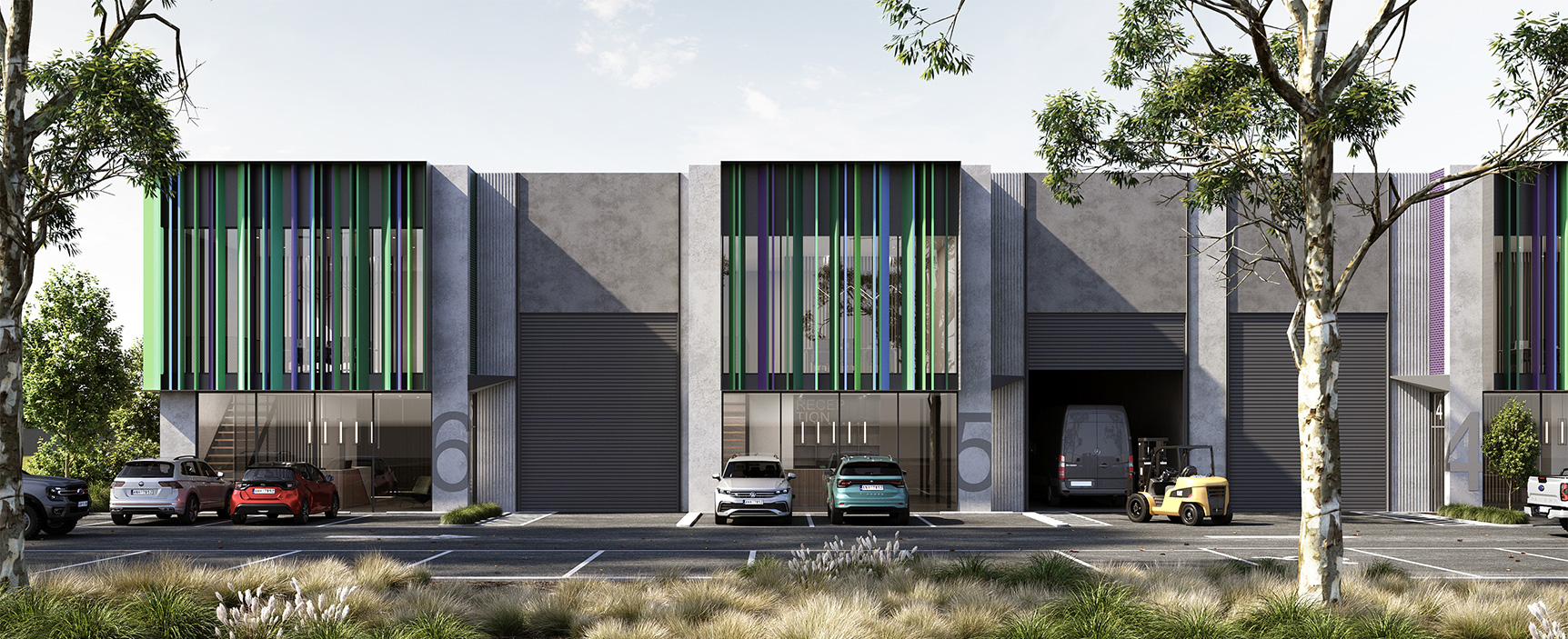 This approach aims to create an engaging and visually captivating environment, while also ensuring functionality, durability, and a sense of identity for each individual warehouse within the allotment. It is designed as a more boutique and stylish offering while still being able to serve the full range of potential tenants.