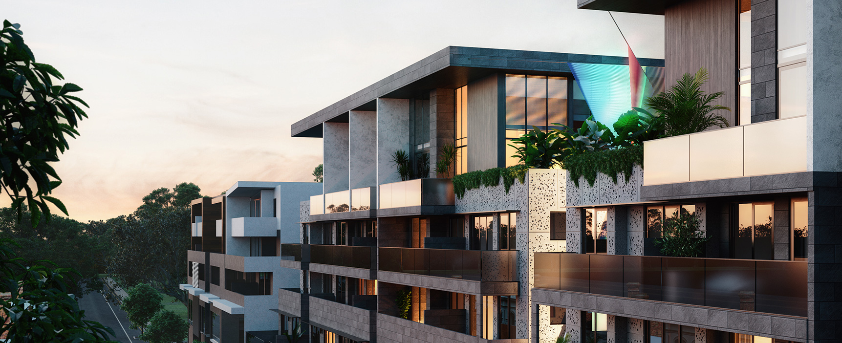 A sense of place is created by the spectacular entry point that comprises vertical gardens and a series of striking works of art that inject colour and energy into life at Cappella.