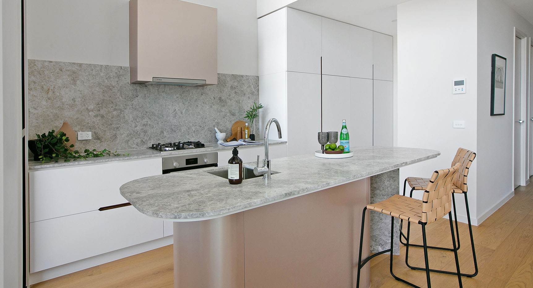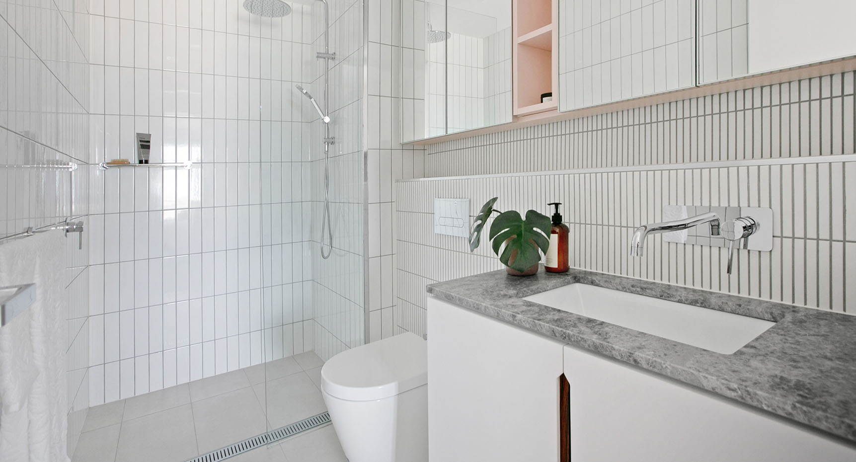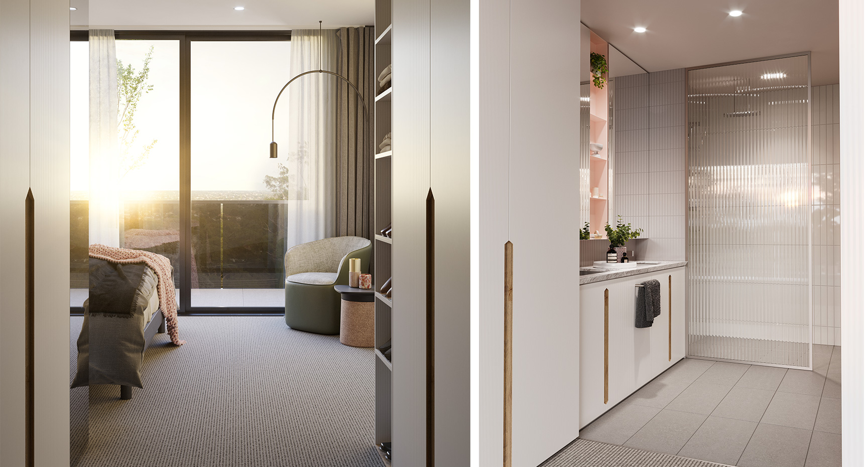 Bedrooms are restful and restorative places, with generously sized walk-in robes and abundant natural light. Taking cues from wellness retreats, bathrooms combine muted tones with luxurious fittings and fixtures to create a serene environment. Crafted joinery and mosaic tiles complete the elegant presentation.