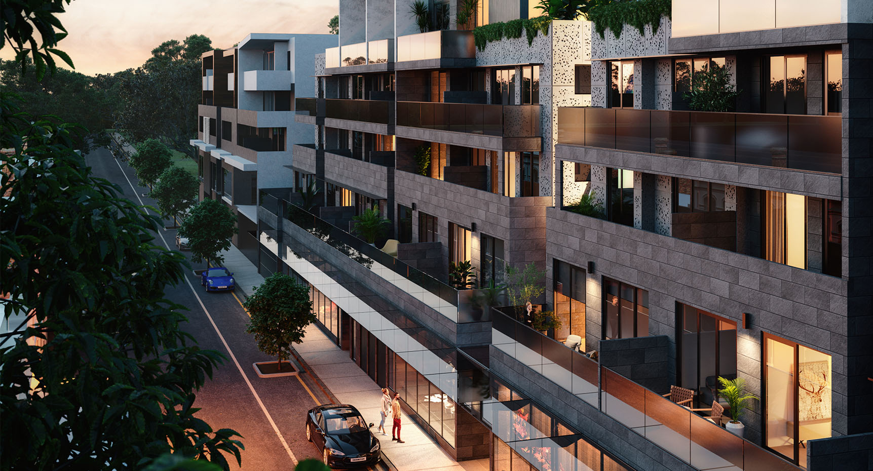 Residents can enjoy private balconies but also take advantage of neighbourly connections offered by the communal garden and retail spaces that spill onto lively local streets.